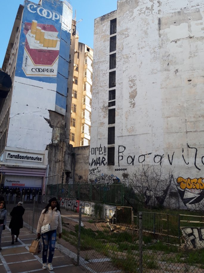 Σαράντα χρόνια μετά τους εμπρησμούς του 1980 και την κατάρρευση του Κατράντζου στη γωνία Σταδίου και Αιόλου, ένα επταώροφο κτίριο ετοιμάζεται να σηκωθεί στο κενό τριγωνικό οικόπεδο ακυρώνοντας τα σχέδια που θα έφερναν εκεί έναν χώρο πρασίνου.