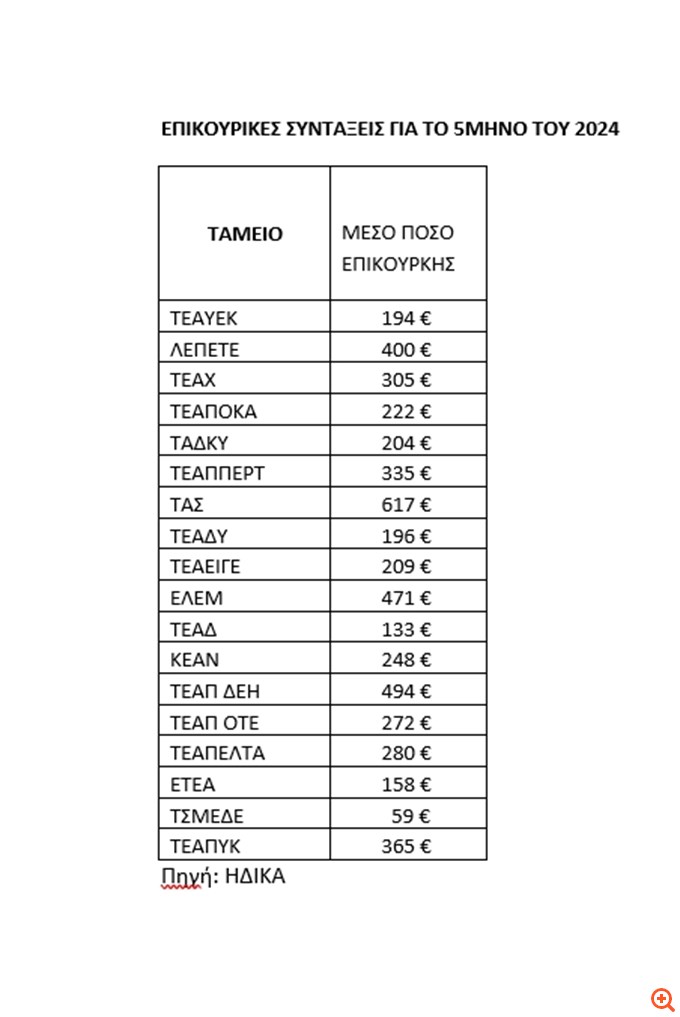 *Σε 10 ταμεία οι επικουρικές είναι από 59 ευρώ ως 196 ευρώ.